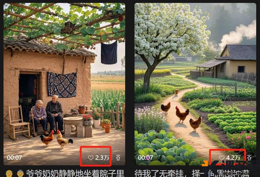 昨天看到了一个乡村夜景的账号,今天又看到了一个乡村治愈的账号,都是用AI制作的,但是这种简单粗暴的视频反而流量很不错。